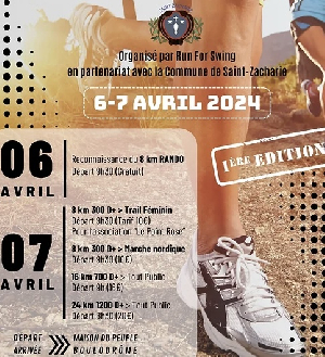 ![]() ![]() Un évènement sportif et solidaire inédit à Saint-Zacharie organisé par RUN FOR SWING en collaboration avec la Commune de Saint-Zacharie. Départ : Maison du Peuple Arrivée boulodrome SAINT-ZACHARIE 83640 Le 6 avril : reconnaissance du 8 km Rando (Gratuit) Le 7 avril : 8 km 300 D+ Trail féminin (10€) 8 km 300 D+ Marche nordique (10€) 16 km 700 D+ Tout public (16€) 24 km 1200 D+ Tout public ( 20€) L’ensemble des bénéfices récoltés sera versé en faveur de l’association Le Point Rose. |