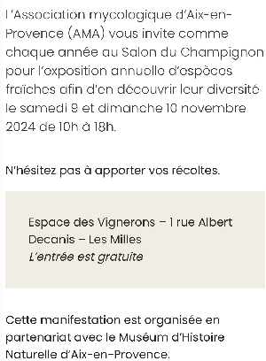 | Intitulé : | Salon du champignon à aix en Provence | |