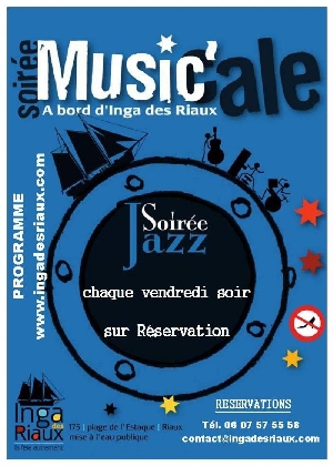 Soirée JAZZ t ous les vendredis Accueil à partir de 20h30 / Concert à 21h00 L'Inga des Riaux (à quai) 13016 Marseille 15€/Pers : Place-concert avec 1 boisson ( Sur place à petits prix : assiette tapas, boissons, desserts, cafés ).